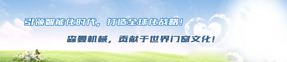“森曼機械”作為全球門窗設(shè)備供應(yīng)商,本著"seaman"精神,勇立潮頭,拼搏創(chuàng)新,以爭做行業(yè)為目標(biāo),在行業(yè)前輩發(fā)展的基礎(chǔ)上,努力學(xué)習(xí),積極進(jìn)取。目前公司產(chǎn)品涵蓋塑料門窗設(shè)備、鋁合金門窗設(shè)備、鋁幕墻設(shè)備、鋁木復(fù)合門窗設(shè)備及中空玻璃設(shè)備五大種類,近百個品種。公司產(chǎn)品銷售至全國各地及東南亞、非洲、東歐、北美等幾十個國家和地區(qū)。在這個競爭激烈的年代,我們正努力使我們的產(chǎn)品!